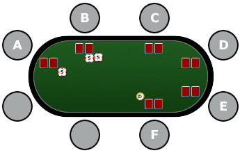 Blinds PlacementMost hands of poker begin by some form of forced betting. This is to ensure that there is action with every hand. Hold'em is played with two blinds (a bet before the pocket cards are received). The two players to the left of the dealer start with placing blind bets. The small blind is posted by the first player and the big blind by the second. The big blind is always the minimum bet at the table and the small blind is half. During a betting round, each player in turn takes one of the following actions:
