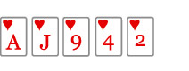 Third Round - The TurnThe dealer now displays the fourth community card on the table, so all players have six cards to play with. A round of betting now takes place. Fourth and Final Round - The RiverThe fifth and last community card on the table is displayed. A round of betting now takes place. The ShowdownIn all, five of the seven cards can be used. This means that each player can form the best possible five-card hand from their two hole cards and the five community cards on the table. You don't even have to use any of your own cards if you don't want to. You can "play the board" if the best hand is shown there. The remaining players now show their cards, and the winner is found. If a player shows his/her cards and you are not able to beat these cards, you choose yourself if you want to show your cards or not. Rating of The Hands
