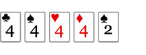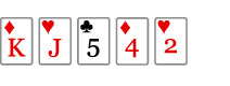Third Round - The TurnThe dealer now displays the fourth community card on the table, so all players have six cards to play with. A round of betting now takes place. Fourth and Final Round - The RiverThe fifth and last community card on the table is displayed. A round of betting now takes place. The ShowdownIn all, five of the seven cards can be used. This means that each player can form the best possible five-card hand from their two hole cards and the five community cards on the table. You don't even have to use any of your own cards if you don't want to. You can "play the board" if the best hand is shown there. The remaining players now show their cards, and the winner is found. If a player shows his/her cards and you are not able to beat these cards, you choose yourself if you want to show your cards or not. Rating of The Hands
